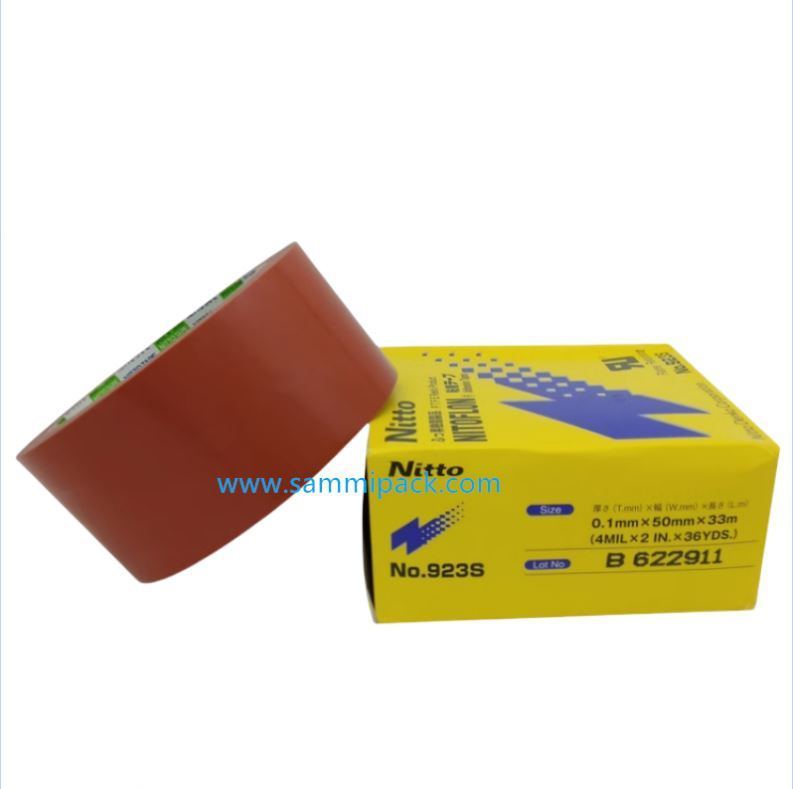 Nitto Tape No.923S는 오렌지색 특수 배향 폴리테트라플루오로에틸렌(PTFE) 필름을 기재로 사용한 테이프입니다. 단면 처리되어 고내열성을 가진 실리콘 접착제가 코팅되어 있습니다. 이 테이프는 전기적 특성, 내열성, 내화학성 및 비점착성 등 우수한 특징을 제공합니다.