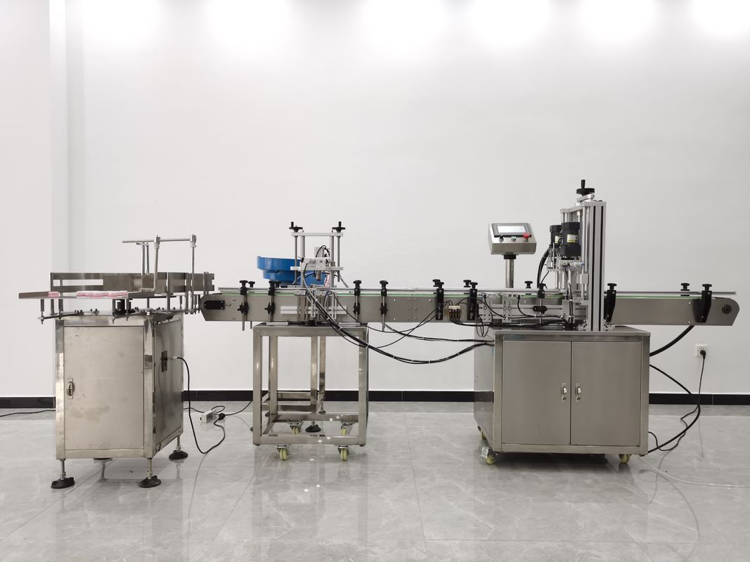 병 공급 테이블에서 병 공급 --- 자동 제품 충전 --- 자동 캡 정렬 및 공급 --- 자동 캡핑 --- 자동 완제품 제공 --- 자동 병 라벨링